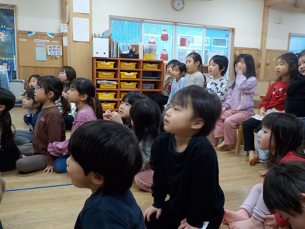 めばえくみ、ふたばくみ、つぼみくみでは忍者が出てくる紙芝居を楽しみました。